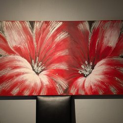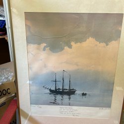 En charmig tavla som föreställer en pojke med hund och katt i en stadsmiljö. Dennis tavla på väv. Tavlan är 42 × 32 cm.