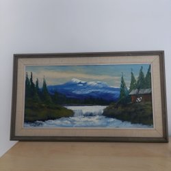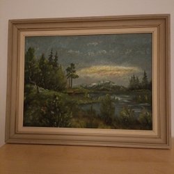 En inramad bild med ett flygplan över ett landskap. Bilden är tagen av en fotograf från F7 på rampen av Hercules. Inramningen är gjord av Gallerix. Små skavanker på ramen, men överlag ett mkt gott skick. Känns som plastglas. Ca 3200 gram väger tavlan. Mått ca 55x95 cm.