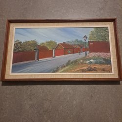 En vacker tavla med måtten 42cm x 32cm. Motivet föreställer en grupp människor runt ett bord i en trädgård.