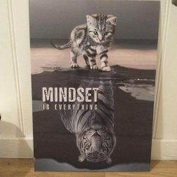 En tavla med texten "Love As though you have never been hurt before" och blommor.