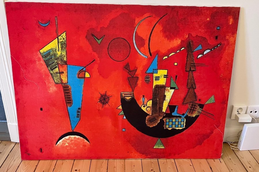 En tavla med abstrakt motiv i rött.