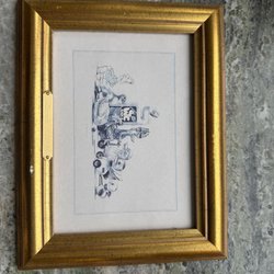 En tavla av Lasse Åberg med motiv av Noaks ark och olika djur. Den är ca 22x18,5 cm .