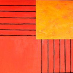 Ett konstverk med titeln "Tvillingljusen vid gäststugan", blandteknik signerat Sten Dunér 1972.