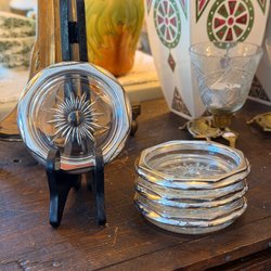 Fyra tavlor med motiv av Lasse Åberg. Motiven inkluderar en mus som vattnar ett ljus, en samling knappar och andra småföremål, en bilkrasch och en anka med en figur i en hink.