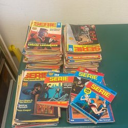 Sju stycken, fyra är lite större. Höjd på dom med ram ca 26 cm samt bredd 33 cm. Tejpen på dom små baksidorna är väldigt torra, så dom börjar smulas sönder. Frakten gäller inom Sverige
