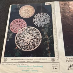 Mönsterblad för virkad spetstablett. Material: 1 litet nystan CB art 203 virkgarn nr 70. Virknål nr 13 eller 14. Storlek: ca 10 cm i diameter.