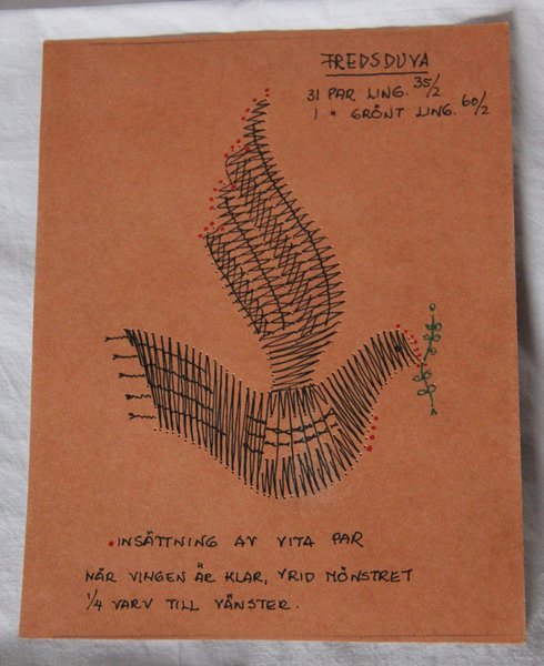 Fredsduva motiv 12 x 10 xm 31 par nr 35/2 lingarn 1 par grönt ling 60/2 Ulla Fagerlin