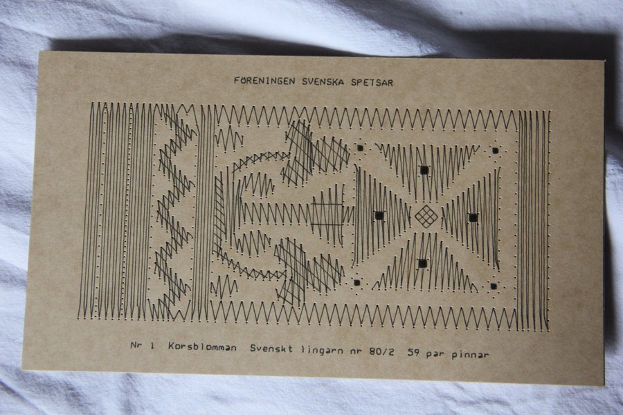 Korsblomman 1 motiv 8,2 x 16,3 59 par nr 80/2 svenskt lingarn Arbetsritning finns