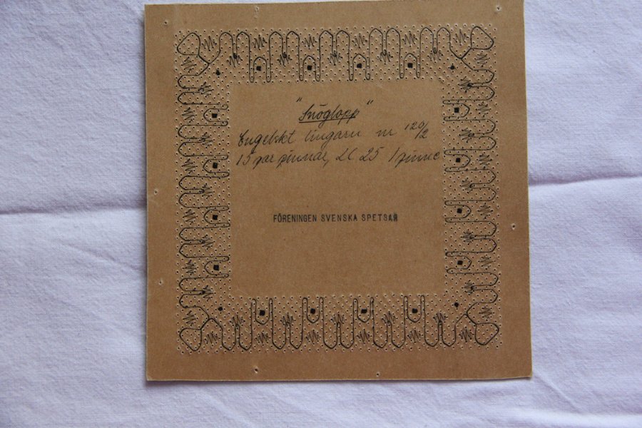 Snöglopp 428 duk 11,5 x 11,5 cm 15 par nr 120/2 engelskt lingarn LC 25 1 pinne Arbetsritning finns