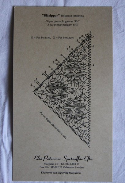 Blåsippor trekantig infällning 8 x 16 cm 50 par nr 90/2 lingarn 3 par pärlgarn nr 8 Arbetsbild medföljer