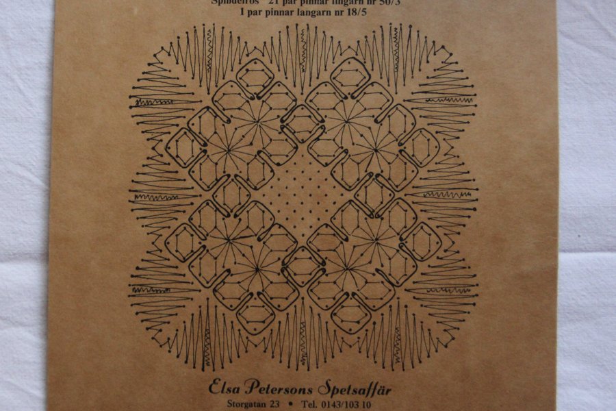 Spindelros helknypplad duk 13,5 x 13,5 cm 21 par nr 50/3 lingarn 1 par langarn nr 18/5 Arbetsbild medföljer