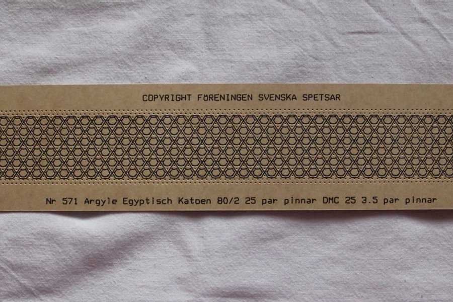 Agryle 571 längd 3,15 cm bred 25 par nr 80/2 Egyptisch katen 3,5 par DMC 25 Arbetsritning finns