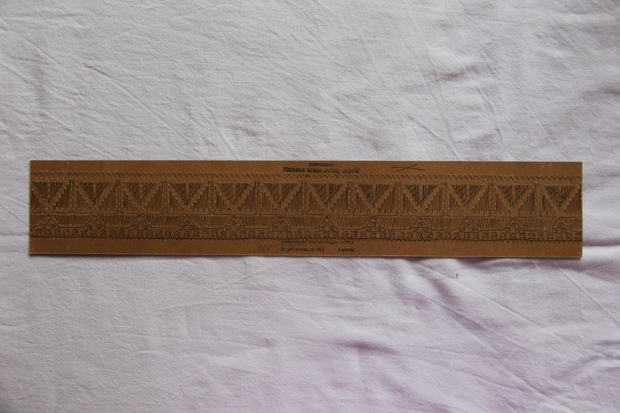 Vättersnipa 401 längd 4,9 cm bred 31 par nr 50/2 svenskt lingarn nr 18/5 3 pinnar Arbetsritning finns