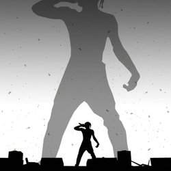 En affisch med en tecknad kanin i en kostym som håller en morot.
