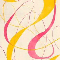 Abstrakt konsttryck med vågiga linjer. Trycket har en delning med en ljus bakgrund på ena sidan och en beige, texturerad bakgrund på den andra. De svarta vågiga linjerna sträcker sig över båda bakgrunderna och skapar ett sammanhängande mönster.