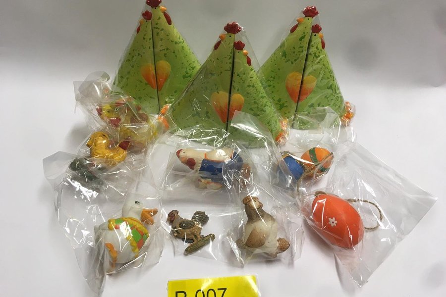 Påskpynt, porslinsägg, påsk, hönor, rispynt