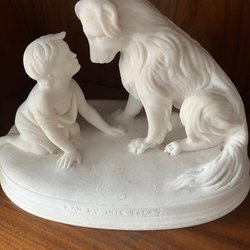 Figurer: "Dam o flicka med blombukett" detaljrikt o noggrant handmålat porslin.