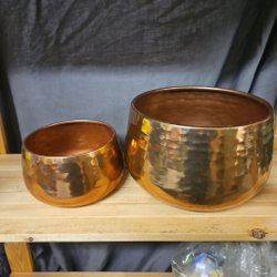 Två fina mullvadsgrå / gråbruna krukor i keramik.