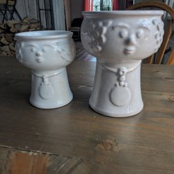 Säljer en fin blomkruka. Den rosa krukan har en unik textur och en rund form. Den röda växtkrukan har en klassisk design med dekorativa detaljer.