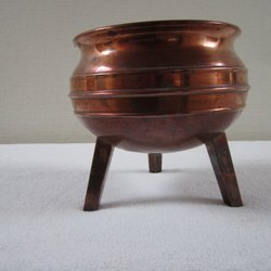 Två krukor, en brun keramik kruka och en keramik sko.