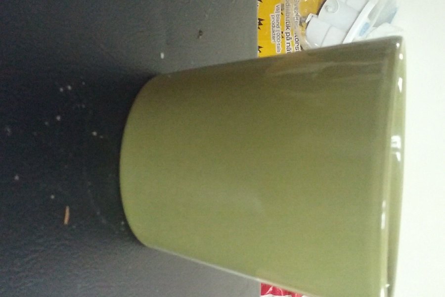 En grön kruka med cylinderformad design. Tillverkad i glaserat material.