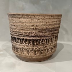 En dekorativ keramik kruka. Perfekt för växter eller som en inredningsdetalj. 13 cm hög och 15 cm i diameter upptill. En bit limmad , syns på sista bilden.