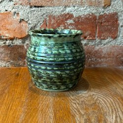 En vas/ljusvas/kruka i unikt mönster med en glansig yta från Oscar Othilde på Östermalm i Stockholm.