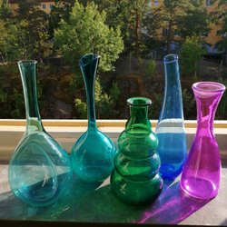 Lila vas i glas.några märken och bubblor i glaset se bild köparen betalar för frakt