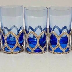 Vackert set i djupt ametistlila glas från 1960–70-talet, typiskt för svensk glasdesign. Setet består av: