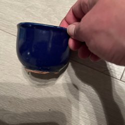 En vacker keramik vas, tillverkad i Danmark. Vasen har en unik design med en färgpalett av blått, brunt och beige.
