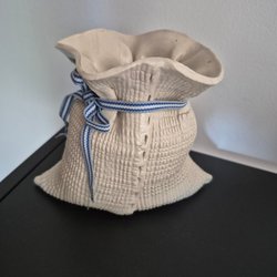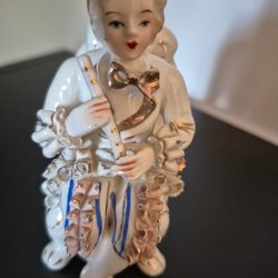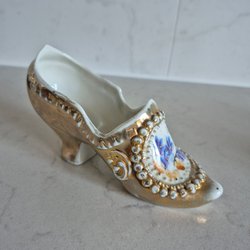 Dekorativ vas i blått med motiv av vagn och blommor. Guldfärgad kant upptill. Finns en märkning men kan inte tyda den. Det kan vara så att vasen är tillverkad i Japan? Den är väldigt fin ialla fall.