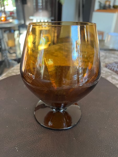 Äldre kupol glas på fot i rökfärgad ca 8 cm diameter och 16 cm hög -40 talet