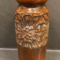 Keramik vas med brun och vit glasyr. Signaturen "XII BTSH" finns på botten.