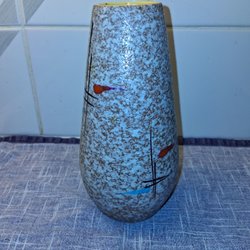 Keramikvas med ett unikt mönster. Kan inte tyda texten i botten, (se bild).