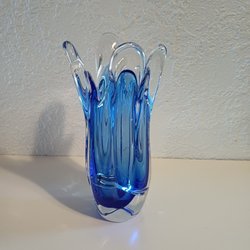 En koboltblå glasvas. Söt. Osäker på tillverkare och tidsperiod.