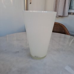 En vit stor glasvas 18x 18cm i gott skick kommer från ett dödsbo se gärna våra övriga annonser samfrakt för billigare frakt