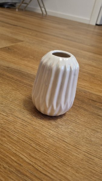 Vit vas med räfflad design.