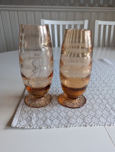 Två bärnstensfärgade vaser