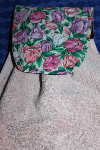 Handduken är i rosa frotté. Vlieselin i överdelen.