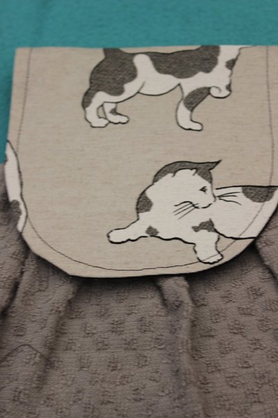 Välsydd spishandduk - fästes med kardborreband runt spishandtaget.