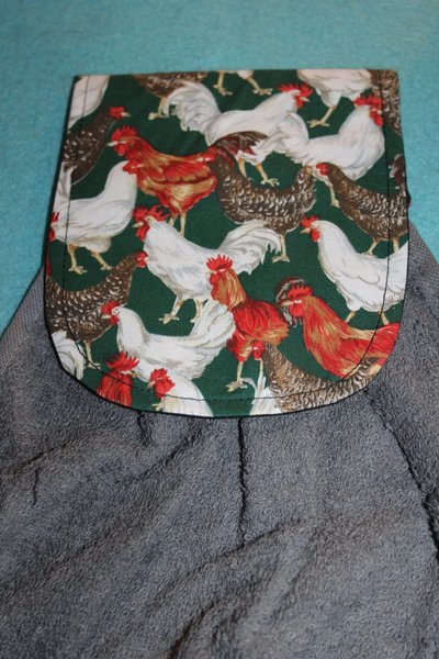 Välsydd spishandduk - fästes med kardborreband runt spishandtaget.