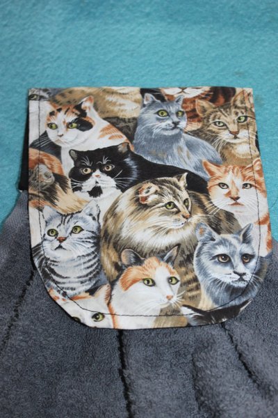 Välsydd spishandduk - fästes med kardborreband runt spishandtaget.