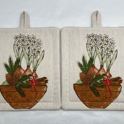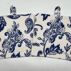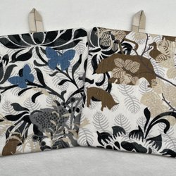 2 st. Grytlappar, nysydda i bomull med älgar, Arvidssons textil