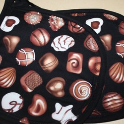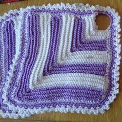 Annonsen avser ett par dvs. 2 Grytlappar som bilden visar. Grytlappens mått: ca 22 cm x ca 25 cm. Mönstrat tyg på båda sidorna.