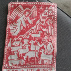 Ett fint förkläde som jag tror är från 60-70 talet. Med ficka. Fint lite använt skick! Mått med banden 125 cm runt midjan. Uppifrån och ner mäter det 61 cm.