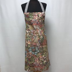 Mått: längd 74cm, bredd 59cm, fastsydd nackrem 63cm och midjeband 80cm x2.