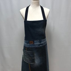 Förkläde i återbrukat jeanstyg med heltäckande mörkblått innerfoder.