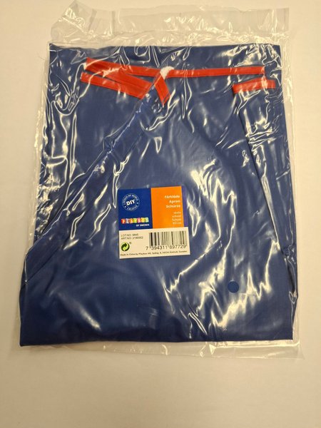 Perfekt för pysselkvällarna. Blått förkläde från Playbox.
