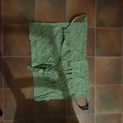 Ett förkläde I lapptäcke tyg med en stor ficka fram knappt använd