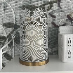 Vitt förkläde med broderat motiv , några små fläckar som knappt syns oh går att ta bort på.